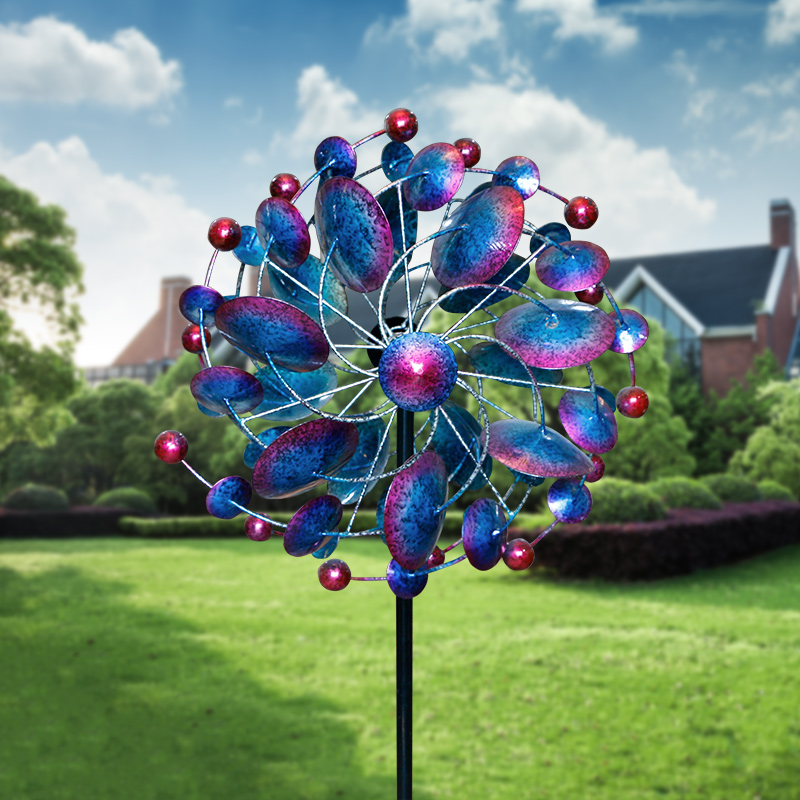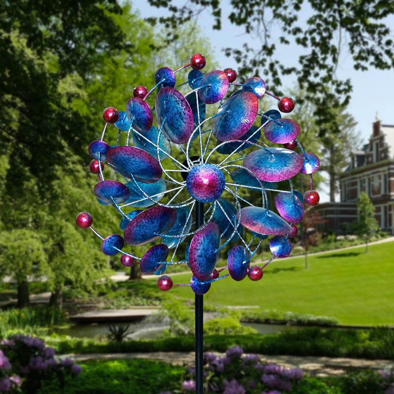 每當(dāng)風(fēng)吹起時(shí),花園的鐵藝風(fēng)車(chē)就會(huì)顯示出令人著迷的動(dòng)感。